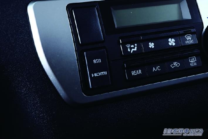 エアコン操作パネルの横に純正スイッチと同サイズの「USB/HDMI接続ユニット)を装着。