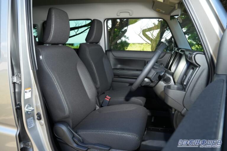 タフワイルドのパワートレーンは、自然吸気とターボのマイルドハイブリッドが用意されている。今回はターボモデルで海を目指した。ほどよく高めのアイポイントで見晴らしがよく、小型車並みのクッションを採用しているシートのフィット感も抜群。