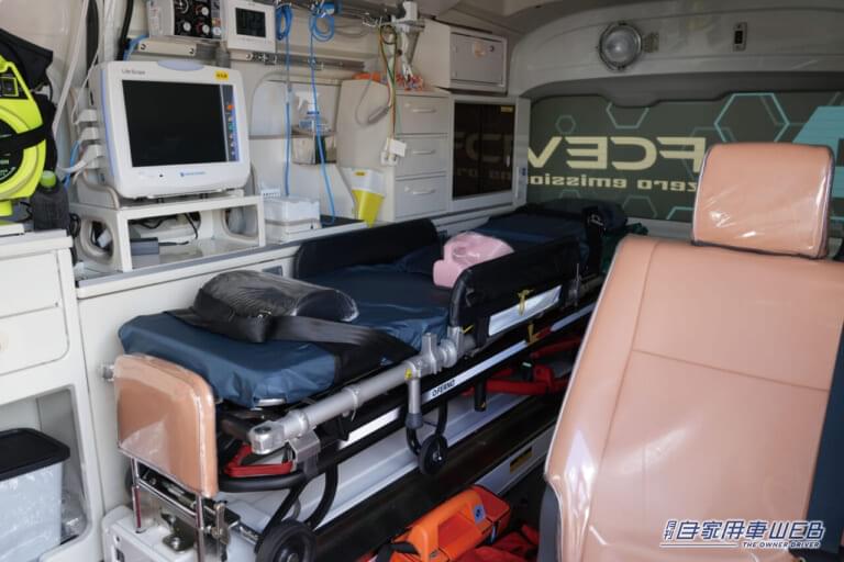 トヨタの高級ミニバン「グランエース」をベースに救急車として必要な装備を搭載。航続距離は約300㎞。