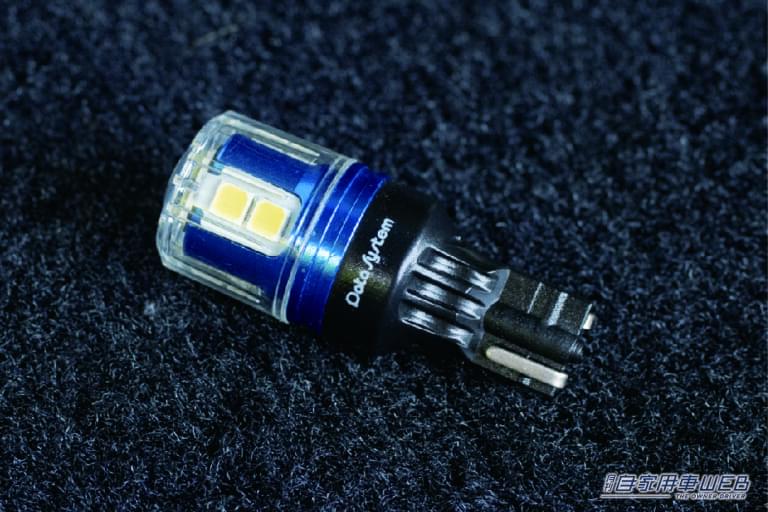 データシステムではLEDバルブのラインアップにも力を入れているが、その中でも最新モデルとなるのが「LED-T16」だ。これはバックランプ用バルブとして使用されている「T16」規格の白熱球と交換装着ができる。見た目はポジションランプ用バルブと似ているがひと回り大きいサイズで、本体には高輝度LEDチップが12個搭載され、全方向に向ける形で配置。これによってムラなく広い範囲を照らせる。光の色を示す色温度は6000K(ケルビン)で、明るさを示す光束は1440lm(ルーメン)となっている。