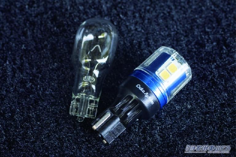 左は純正の白熱球だがサイズはほぼ同じ。リヤコンビランプユニットに無理なく納まる。