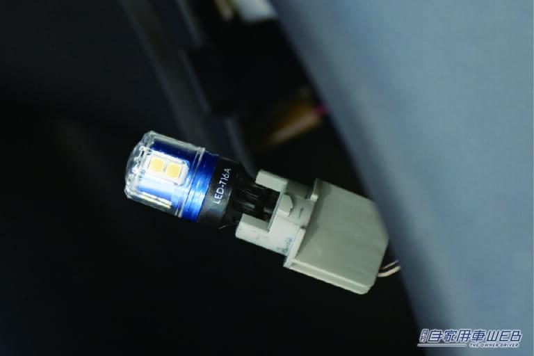 純正ソケットに差し込むだけの簡単装着。ただしLED-T16は端子部にやや厚みがある。