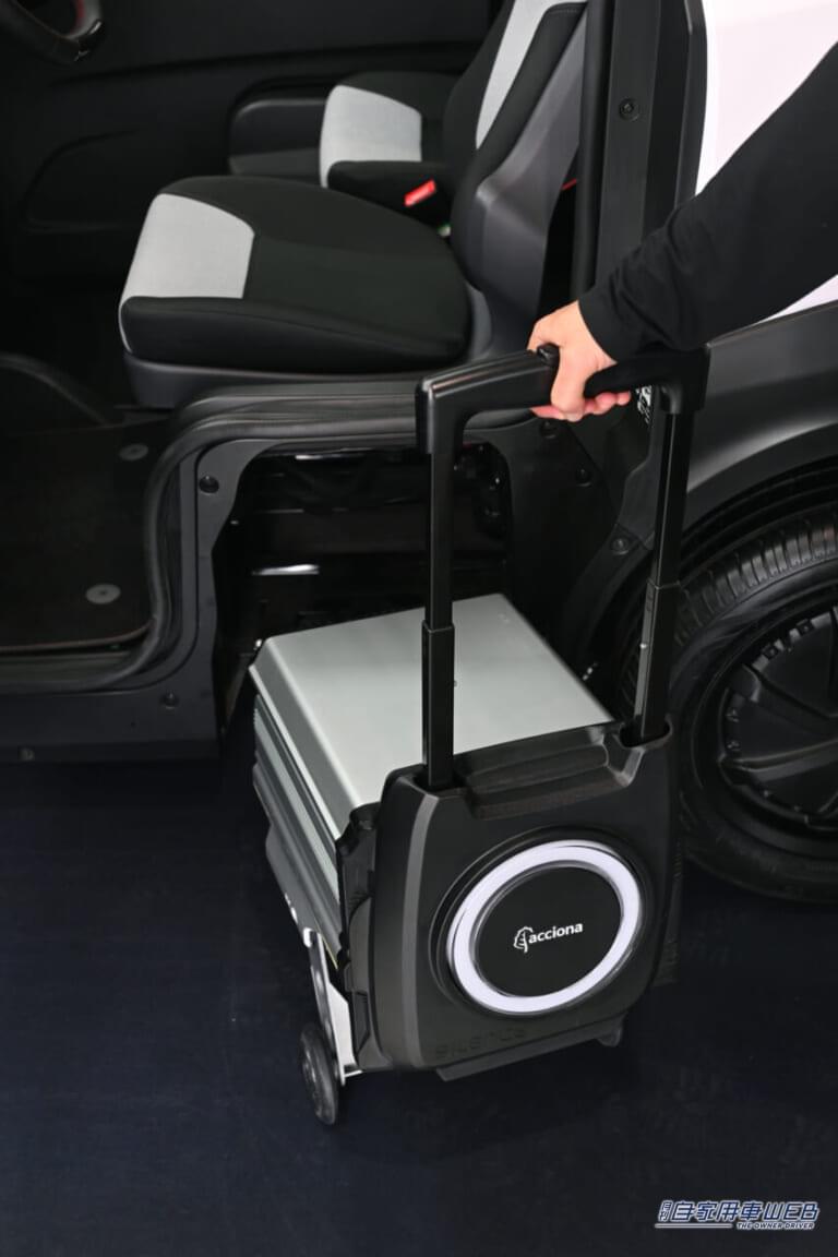 注目のバッテリーは、5.6kWhバッテリーを2基搭載。バッテリーに直接充電する機能に加えて、各地に展開される「アクシオナ・バッテリーステーション」で充電済みのバッテリーに交換することも可能。さらにバッテリーは取り外しが可能なため、自宅やオフィスでも簡単に充電することもできる。