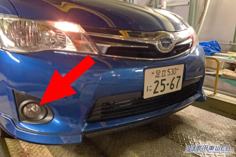 写真のように、ヘッドライトの下に設置されている場合が多いが、ヘッドライトユニット内に設置されている車種もある。このフォグライトは、悪天候時のためのものなので、それ以外の状況下で使用した場合は、周囲のクルマに迷惑となるばかりか、法令違反になる可能性があるので注意が必要だ。
