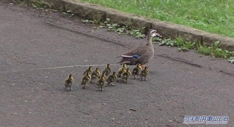 突然カルガモの親子が飛び出してきた場合、轢いてしまう可能性も。