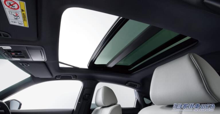 ●e:HEV EX では、電動パノラミックサンルーフを標準装備。開放感をさらに高めるとともに、電動式チルトアップ機構による優れた換気性能がキャビン内の快適性を向上