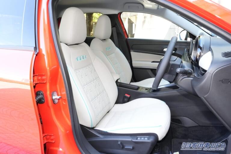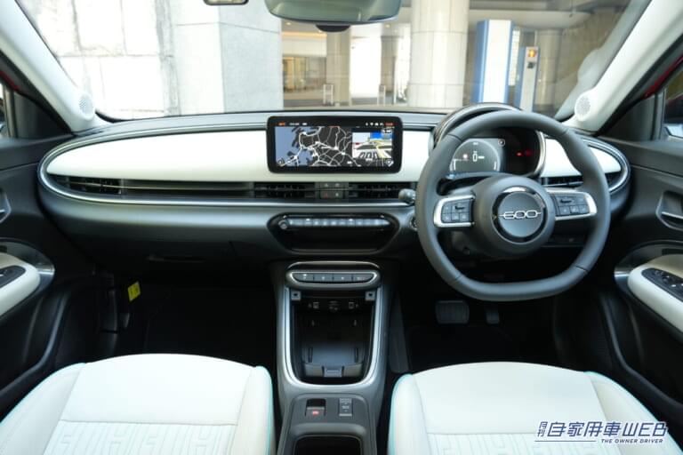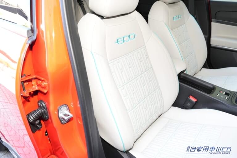 運転席は6WAYパワーシートとなっており、助手席もシートリフターを装備。タウメル式のリクライニング機構を装備しており、無段階にシート角度を調整できる。前席2座にはシートヒーターが備わるのも嬉しいところだ。丸型のメータークラスターや2スポークステアリングホイールなど、初代600を連想させるアイテムも心にくい。水平基調のインパネデザインも500eと共通ですっきりとしていて気持ちいい。