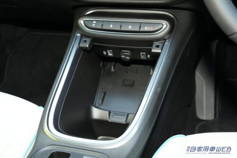 小物収納に関してはさしたる工夫は見受けられないが、前席センターコンソールにはボックス状の大型スペースを設置。スマホのワイヤレス充電機能やUSBポートなども備えており機能的には十分だ。