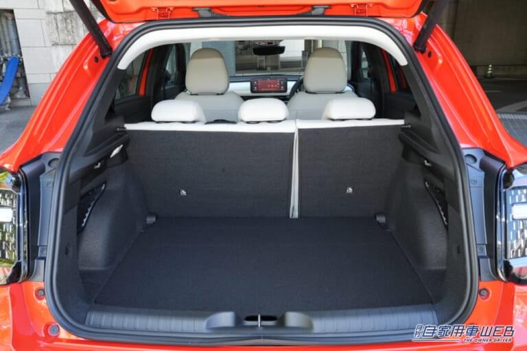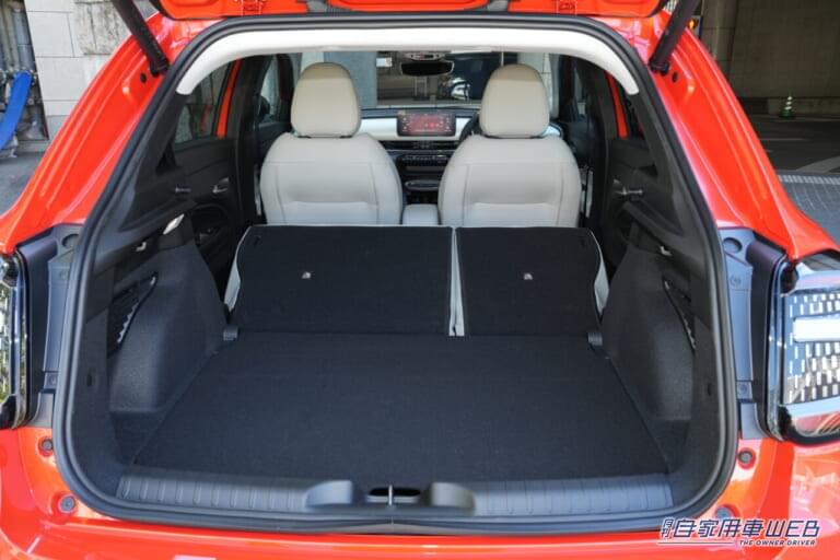 後席の格納機能はシンプルな前倒式になるので、床面は完全にフラットにはならないが、広々としたスペースが確保されることで実用性も十分。ラゲッジ容量は通常時で360L。後席を格納すれば最大で1231Lまで拡大される。