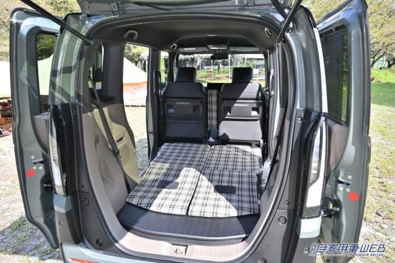 フロア後端がN-BOXよりも伸長され、後席を倒すとくつろぎの空間に。