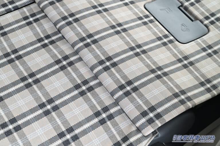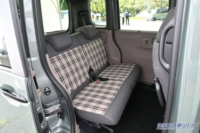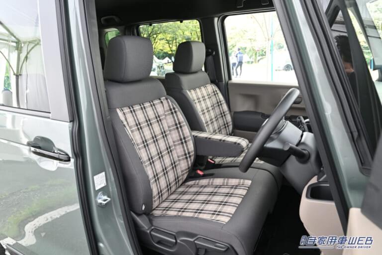 インテリアには、汚れが目立ちにくいチェック柄の撥水シートを採用。さらに、後部座席をダイブダウンするだけで後端まで限りなくフラットになる室内フロアにより、テラスのような空間に。リラックスして過ごせるこの空間は「ふらっとテラス」と名付けられた。