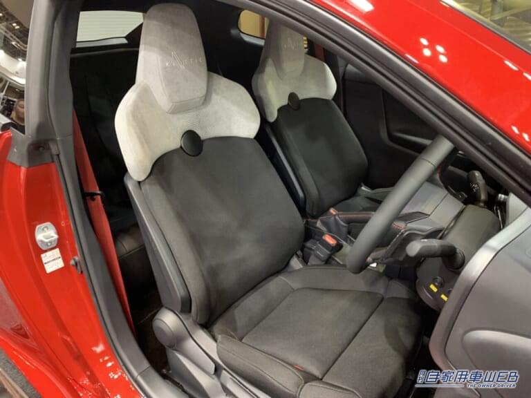 今回、GRヤリスに装着されての参考出品となったキネティックシート。リクライニングやリフターといったシート機能は標準シートと変わらず利用できるということがミソ。