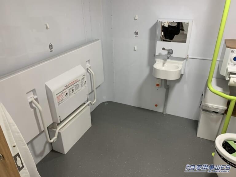 さらに、車両サイドには上下水道接続用のノズルも備えているため、使用回数の上限がない定置型としての運用も可能となっている。