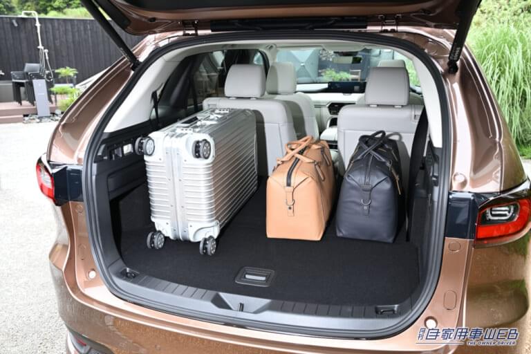 荷室は、3列シート使用時でもゴルフバッグやベビーカーが搭載可能な大容量の空間が確保されている。