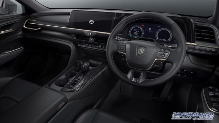 インテリアはインパネに「THE LIMITED-MATTE METAL」専用のレーザー加飾を刻印したほか、専用のステアリング加飾を特別設定。コクピット周りも特別なクラウン スポーツにふさわしい仕立てを実現している。