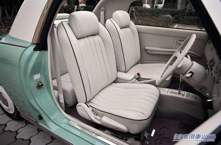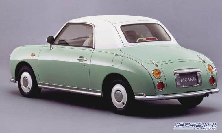 さらにその1989年のショーには、アメリカ製の本革シートや優雅な白いインテリアを備えたフィガロを出品。こちらも1991年に発売した。Be-1が先着順の販売で混乱を呼んだ反省から、パオは2か月の期間限定で5万台以上を受注。フィガロは2万台の限定で、2回に分けて抽選を実施。いずれも好評のうちに完売している。性能ではなく、ある種のライフスタイルの表現で支持されたこれらのモデルは、パイク(尖った)カーと名付けられて、日産のブランドイメージの向上にも寄与した。日産では、1994年にサニーをベースに同様の思想で作られたラシーンも発売。こちらも一定の評価を得て、現在の中古車市場でも高値で取り引きされている。