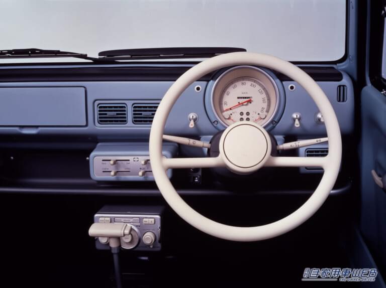 ●全長×全幅×全高:3740㎜×1570㎜×1475㎜●ホイールベース:2300㎜●車両重量:720㎏●エンジン(MA10型):水冷直列4気筒SOHC987㏄●最高出力:52PS/6000rpm●最大トルク:7.6㎏・m/3600rpm●燃料タンク容量:40L●トランスミッション:5速MT●最小回転半径:4.4m●タイヤサイズ:155/80R12●乗車定員:5名 ◎新車当時価格:144万8000円