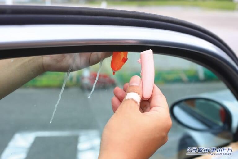 実験方法はいたって単純。クルマ(アルファ147とビスタ)の窓に食品を挟んで、パワーウィンドウを上げるだけ。パワーウィンドウはオートモードとスイッチ引きっぱなしのマニュアルモードの両方を使う。