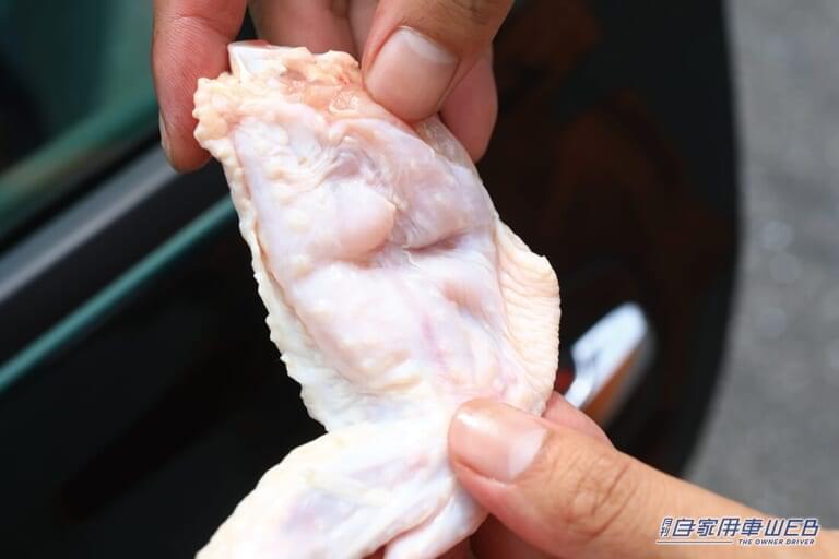 次に手羽先は、かなり食い込むが骨は折れず。がっつりと肉に食い込んでいるので、指を挟んだらどうなるか想像できるだろう。