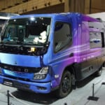 |「胸キュン…」作業員を自動で追っかける”いじらしい”清掃車:ミツビシふそうeキャンター センサーコレクト【JMSB2024】