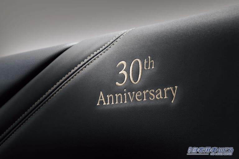 インテリアでは、アイボリー×ブラックナッパレザーの本革シートを採用することで、スポーティかつ上質なデザインに仕上げられている。さらに、30周年記念を象徴する30th Anniversary専用リヤオーナメントや、専用刺繍(ドアトリム)が施され、特別感溢れるモデルとしている。