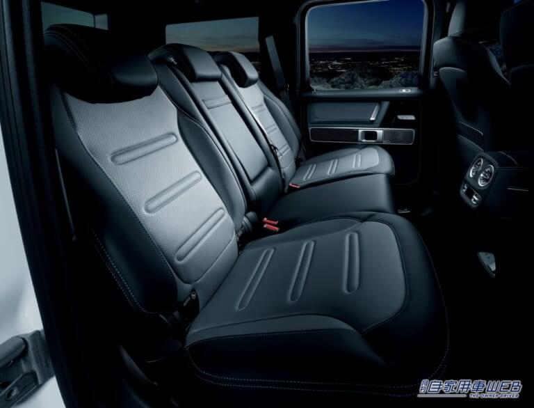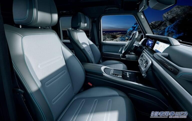 インテリアは、丸型のエアアウトレットや助手席側のグリップハンドルなどGクラス伝統のデザインを踏襲しつつ、MBUXや最新世代のマルチファンクションステアリングホイール、キーレスゴー、 Burmester3D サラウンドサウンドシステムなどの最新装備が組み合わされている。