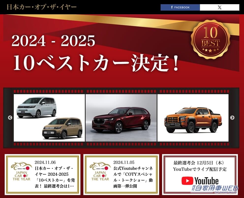 一般社団法人日本カー・オブ・ザ・イヤー実行委員会(実行委員長:加藤 哲也)は、日本カー・オブ・ザ・イヤー 2024-2025 の最終選考会に進出する上位10台の「10ベストカー」を発表した。