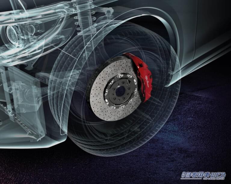 ブレーキシステムは2タイプから選択。このカーボンセラミックブレーキシステムは高温時の強度に優れるなどフラッグシップにふさわしい高性能が与えられている。