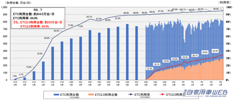 ETC利用状況の推移。※出典:国土交通省ウェブサイト