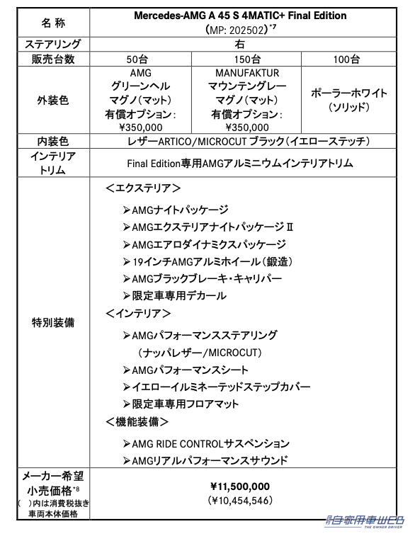 今回導入される「A 45 S 4MATIC+ Final Edition」は、Mercedes-AMG A 45 S 4MATIC+をベースにした特別仕様車。