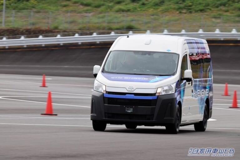 まずは比較用の水素エンジン仕様のグローバルハイエースに試乗。出力は十分だがアクセルを踏んだ時の応答性の悪さと初期のターボ車のような唐突なトルク特性が気になった。