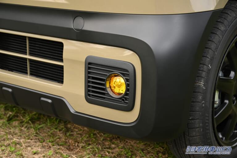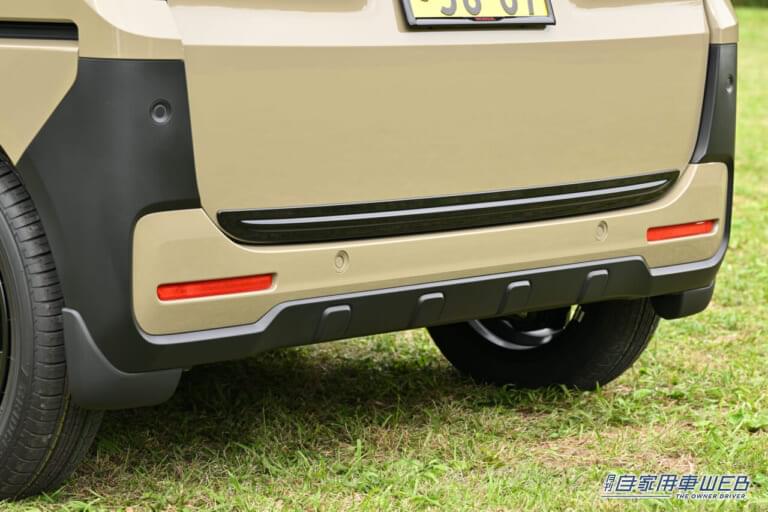 黒い樹脂部分のシボ加工を、車両のフロントバンパーやサイドロアーガーニッシュと同様の粗目処理にすることで、車両の統一感を高めるデザインを採用。