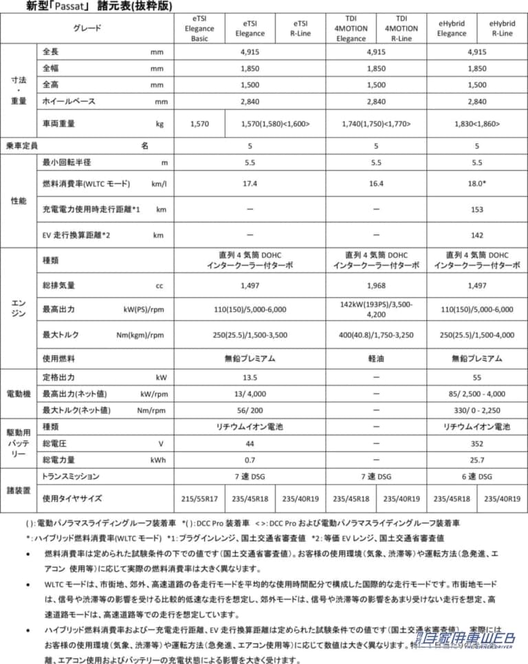新型「Passat」:7グレード展開