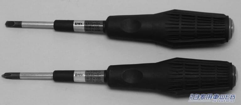 ドライバーは整備用途に限らず家庭内にも必ず1本や2本は存在する。棚やカーテンレール、そして電気機器と、何をするにしても最低限必要となる工具といえる。しかし、家庭向けの製品は強度が低く仕上げが雑、それにサイズ自体がいい加減という例もある。整備には整備向けドライバーを用いるのが原則だ。
