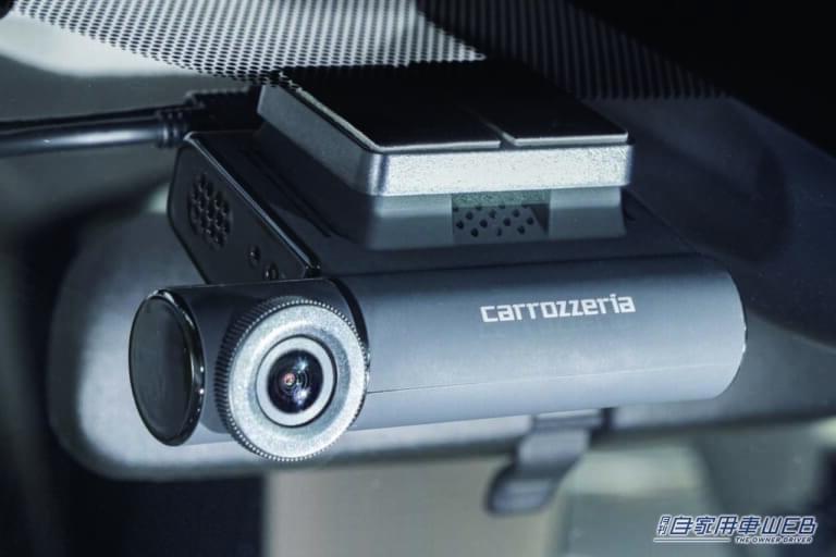 スタイリッシュで薄型の本体に小型リヤカメラを付属し、Wi-Fi接続したスマホで設定操作や記録映像のダウンロードが行えるのが特徴の、カロッツェリアの自信作「VREC-DZ800DC」。