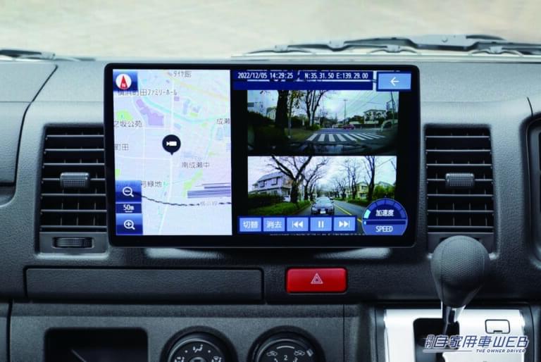 AI搭載通信型オールインワン車載器「NP1」は前方と車内を撮影できる2カメラドラレコ機能を標準搭載しているが、NP-RDR001を組み合わせることで車両後方も撮影できる3カメラ態勢にグレードアップできる。映像再生はWi-Fiを介して専用スマホアプリで行える。
