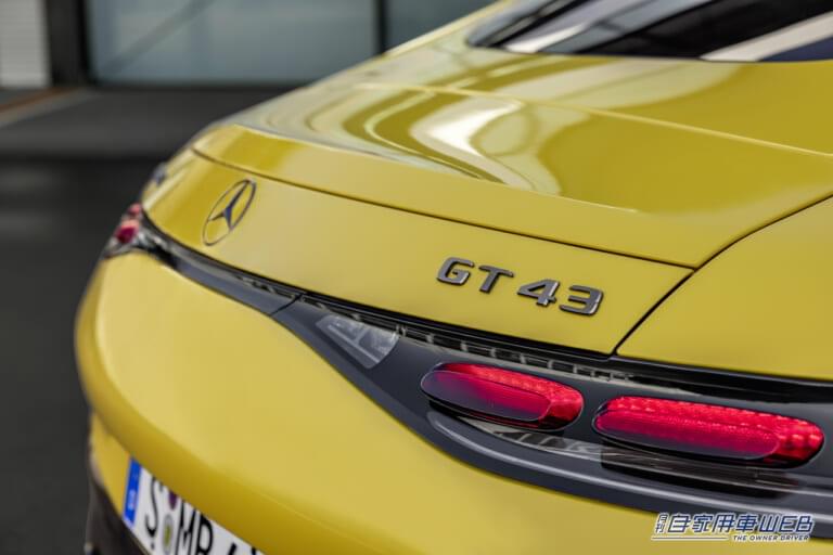 今回、日本上陸を果たした「メルセデス AMG GT 43クーペ(以下、GT 43)」はメルセデス AMG GTシリーズに追加された最新モデルで、前後フェンダー幅を抑えてナローでスリムなスタイリングを採用したことと、AMG GTシリーズでは初採用となる2リッター直列4気筒ターボエンジン(M139型)が特徴だ。