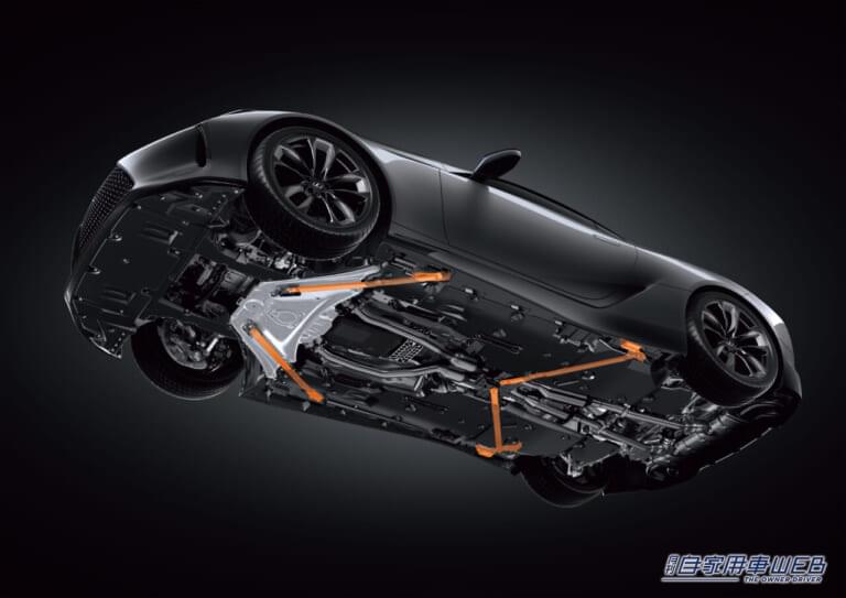 具体的な変更点としては、LC500のフロントとリヤに床下ブレースを採用することで、より高いボディねじり剛性を確保。これにより、操縦安定性と、ドライバーのステアリング操作にクルマが素直に応える車両応答性が高まっている。