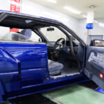 ケンメリの部品やデザインをそのまま流用するだけではなく、ケンメリらしさを残しながらも今の時代に合ったスタイルを探求。ボディカラーは、学生が考えたオリジナルカラーの「トモアキブルー」。ケンメリのブライトブルーメタリックをベースに、新たにパールを加えて調色されたものという。