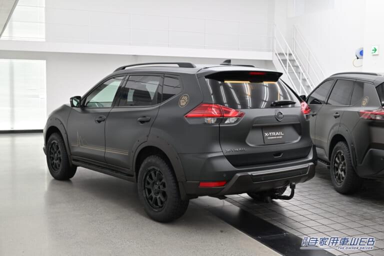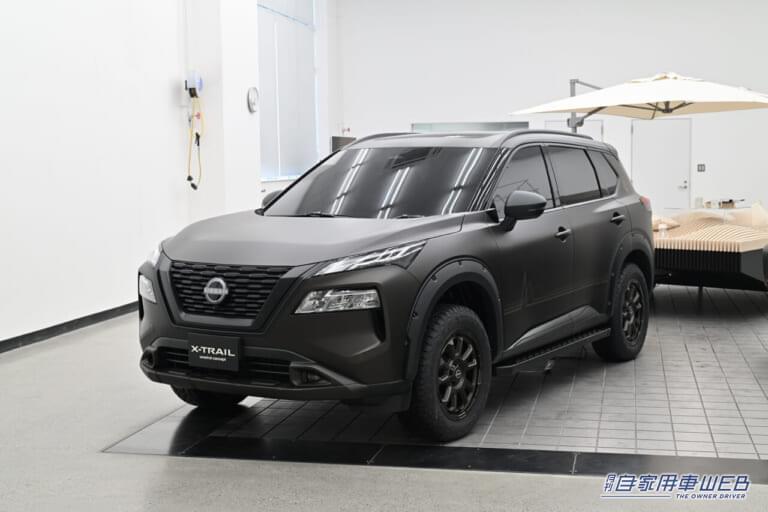 「X-TRAIL unwind concept」 シックな趣が強まるブラックフィルムのラッピング施工が印象的。ほかにも専用開発の純正品やJAOS製パーツが散りばめられるなど、純粋なカスタマイズモデルとしても面白いアプローチが目白押し。