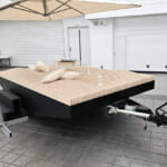 「2」をモチーフとしたラックの上段には、オーディオテクニカが監修したアナログプレイヤーシステムを設置。下段にはコレクションされたレコードが並ぶ。