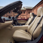 内装加飾はベース車と同じレザー仕様となるが、ヘッドレストは専用のエンボス加工仕様となる。