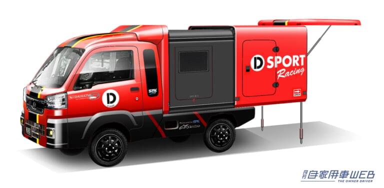 【ハイゼット トラック ジャンボ EXTEND2】モータースポーツ活動に帯同するサポートカー。全長3395mm×全幅1475mm×全高1900mm、排気量 660cc (NA)(主なカスタム内容)オリジナルボディカラー、オリジナルスライド式カーゴスペース