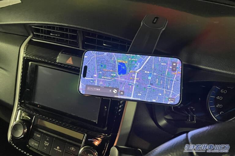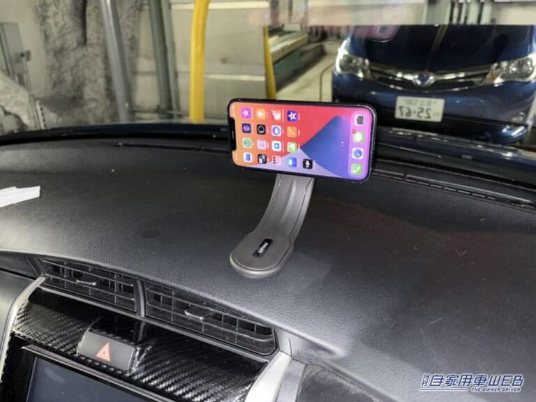 大型サイズのiPhone16 plusでもしっかりとホールド。グラグラするような不安定さはまったくない。