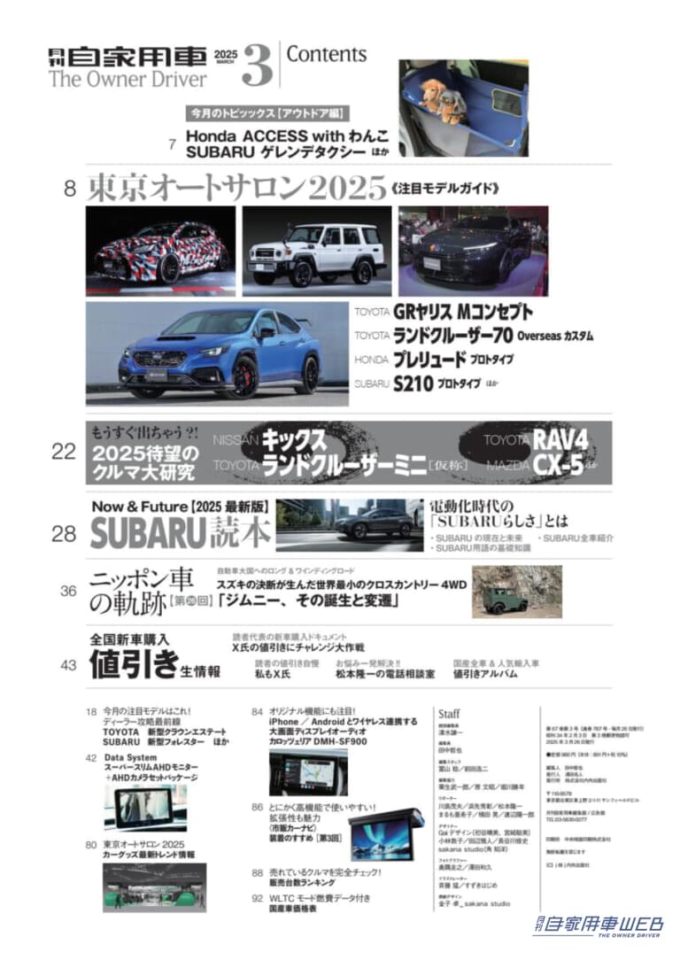 月刊自家用車3月号絶賛発売中!最新SUBARU読本/クロストレックS:HEV公道試乗/2025新車購入計画/新型待望のクルマ大研究/東京オートサロン2025/全国新車値引き生情報etc.今月号も必見です!