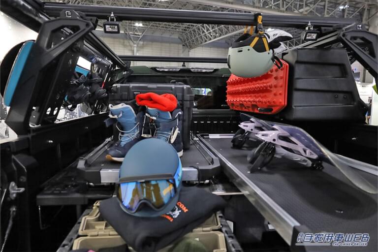 そのコンセプトの通り、タンドラの荷台部分には、スノーボードやギアなどを効率よく収納できるようカスタムされており、アクティブなユーザーにとってかなり気になる仕様として仕上がっていた。