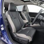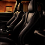 キャビンまわりの基本形状と機能はレヴォーグとほぼ同じ。前後シートはトリコット/ファブリック地が標準だが、メーカーOPで本革シート(写真)も選択可能。プレミアムの演出もなかなか巧み。これも人気を集める理由になっている。
