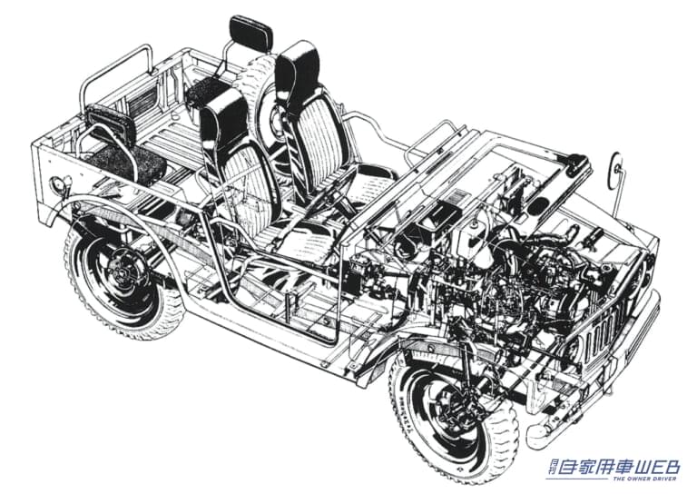 ところが、キャリイ用の空冷2気筒2サイクルエンジンを積み、ウインチなども使えるPTO(外部出力軸)も設定された本物のオフローダーに仕立てられたジムニーは、見事に売れたのだ。