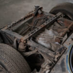 スカットル付近に転がっている錆びたシャフトは、フロントフード関連のパーツか。フードが見つかることを願うばかりだ。