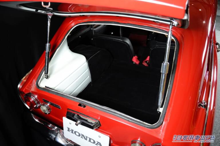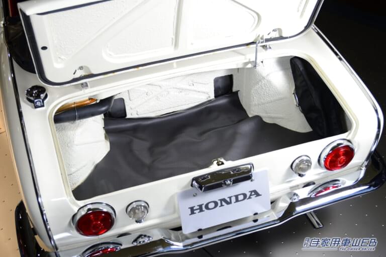 モータリゼーション到来前の当時、スポーツカーなど庶民にはまだ夢。しかし、二輪でいち早く世界で認められたホンダの四輪車進出は、人々にまだまだ伸びゆく日本の実力を予感させた。来場者はそこに自身を重ね、遠くない未来にそれに乗る日を夢見たのだ。二輪技術を活かしたエンジンは、オールアルミ製の4気筒4キャブDOHC。手間のかかる組み立て式のクランクシャフトやニードルベアリング(ころ軸受け)などのレース技術がふんだんに使われ、8500回転以上という驚異的な高回転・高出力を誇った。そのいずれもが、本田宗一郎の肝入りによる。もっとも、やはり本田のこだわりから生まれた、リヤサスアームを兼ねた独創的なチェーン駆動には、中村は疑問を抱いていたと後年に語っている。事実、1966年には最終駆動方式は一般的なシャフト式となり、サスペンションも固定軸式に改められたが、操縦性、信頼性はともに向上している。